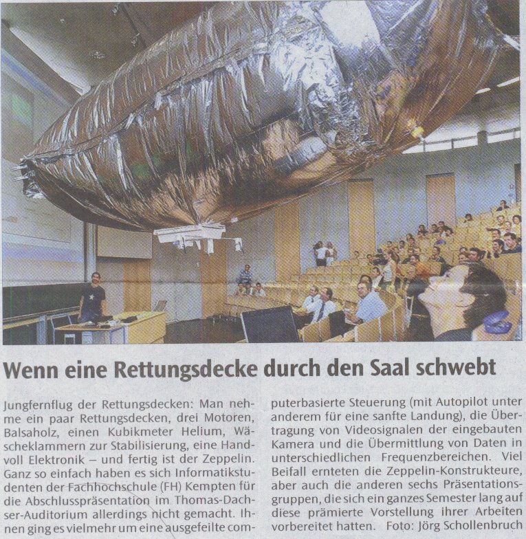 Zeppelin ist computergesteuert durch den Hörsaal geflogen.